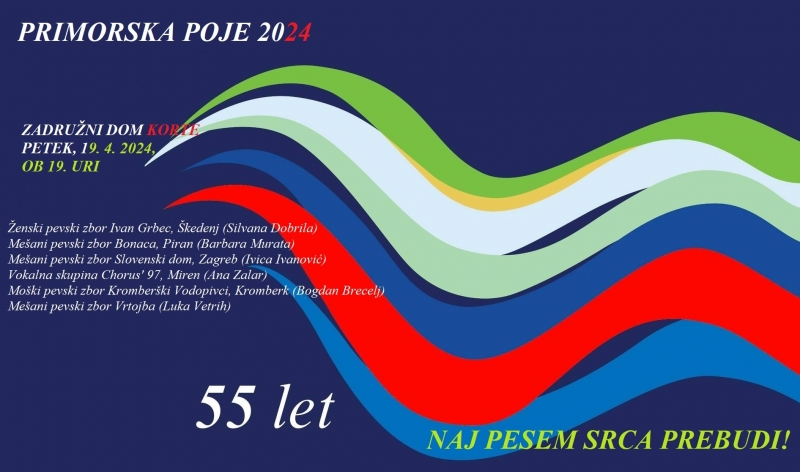 Vabljeni na koncert Primorske poje 2024 v petek, 19. aprila 2024, ob 19. v zadružni dom v Kortah!